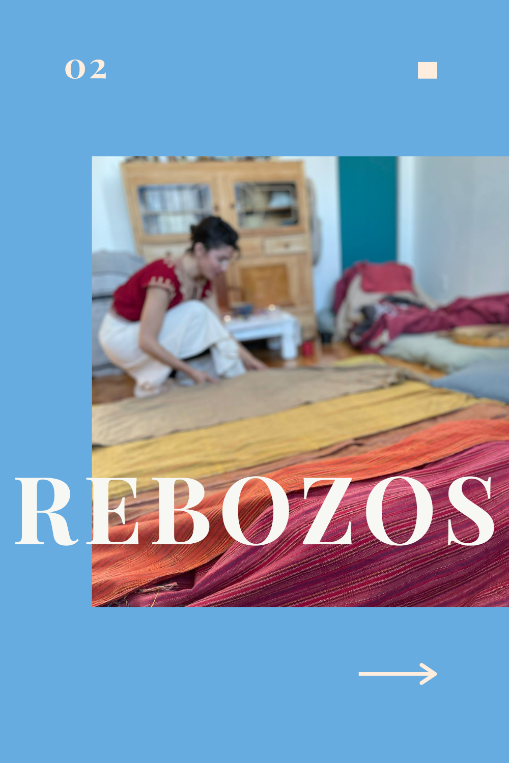 Le rebozo est utilisé́ de la naissance jusqu'à̀ la mort. Le tissu serrait autour de nous représente le câlin de nos grands- mères. C'est pour cela qu'il est utilisé lors des cérémonies au Mexique pour sentir la présence des ancêtres. Les franges représentent l'amour et les caresses de nos mères.